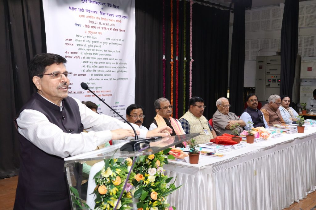 मुंबई। मुंबई विश्वविद्यालय के फिरोजशाह मेहता सभागार में हिंदी विभाग और केंद्रीय हिंदी निदेशालय की 27 से 29 मार्च के बीच तीन दिवसीय राष्ट्रीय संगोष्‍ठी का  सम्पन्न हुई। इस संगोष्‍ठी के उद्घाटन सत्र में अध्यक्षीय वक्तव्य देते हुए कुलगुरु डाॅ.रवीन्द्र कुलकर्णी ने राष्ट्रीय शिक्षा नीति 2020 के संदर्भ में कौशल विकास को रेखांकित किया। इन्होंने कहा कि हिंदी भाषा और साहित्य के माध्यम से कौशल विकास की बड़ी संभावना है। हमें भाषा और साहित्य को नई तकनीक से जोड़ना होगा।इस अवसर पर केंद्रीय हिंदी निदेशालय के निदेशक डाॅ.सुनील कुलकर्णी ने कहा कि हम निदेशालय के माध्यम से कौशल विकास के लिए अनेक योजनाएँ चला रहे हैं। इन्होंने मराठी संत कवि तुकाराम के दृष्टांत द्वारा श्रवण कौशल के महत्त्व पर प्रकाश डाला।